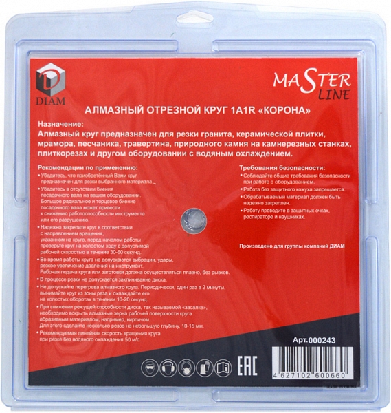 - Корейские технологии: изготовлен по технологиям и под контролем ведущих производителей алмазного инструмента Южной Кореи, специально по заказу ГК Диам