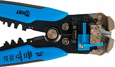Автоматический многофункциональный стриппер КВТ WS-04A (KVT ВС-04А) с винтом микронастройки предназначен для снятия изоляции с проводов сечением 0,05 – 10 мм², резки проводов сечением до 10 мм², снятия оболочки с плоских проводов ВВГ-П и ПУНП, опрессовки изолированных с красной, синей и желтой манжетами наконечников, неизолированных наконечников, автоклемм под двойной обжим 0,5 – 6 мм².