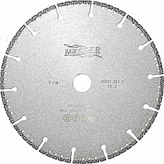 Диск отрезной алмазный Messer V/M (Мессер В/М) предназначен для резки железобетона, бетона, кирпича, все видов камня, каменной кладки, чугуна, ковкого чугуна, стали, меди, арматуры, дерева, ДСП, труб ПВХ и т.д.