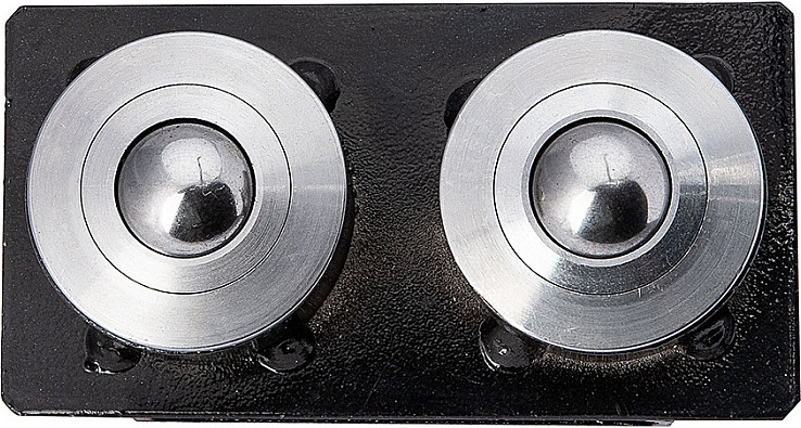 Двойной ролик для трубных опор Rotorica 18 мм (Роторика 18 мм) на скользящей площадке устанавливается с 2-х сторон V-образной опоры трубных стоек и фиксируются барашковым винтом. Направляющий ролик используется для снижения момента трения с возможностью приложения минимальных усилий при перемещении по опоре или вращении труб. Для подстройки под диаметр трубы площадка с роликами имеет возможность перемещения и фиксации в необходимом положении. Как правило, трубная опора используется совместно с резьбонарезными станками, желобонакатчиками, электрическими труборезами и т.д.