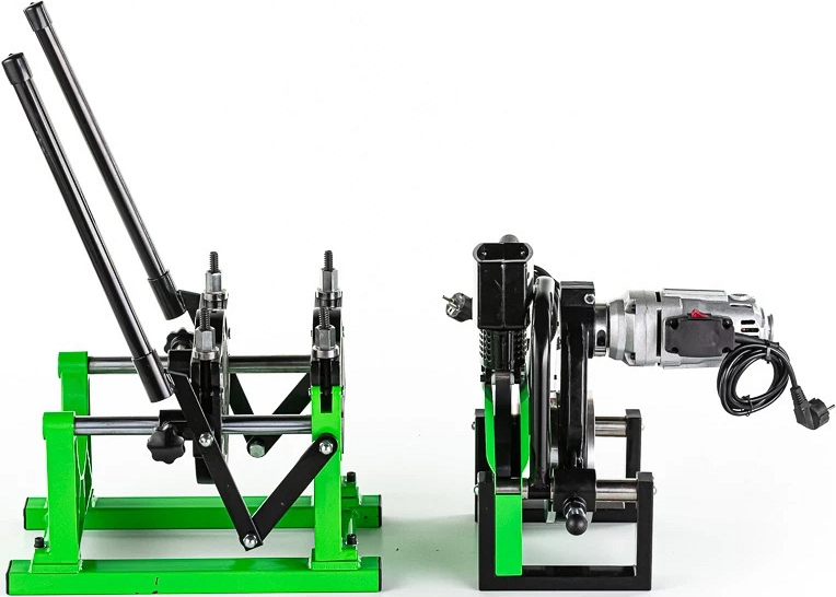 - Конструкция предусматривает наличие центратора с 2-мя зажимами, рычагов и винтовых фиксаторов для надежного закрепления труб