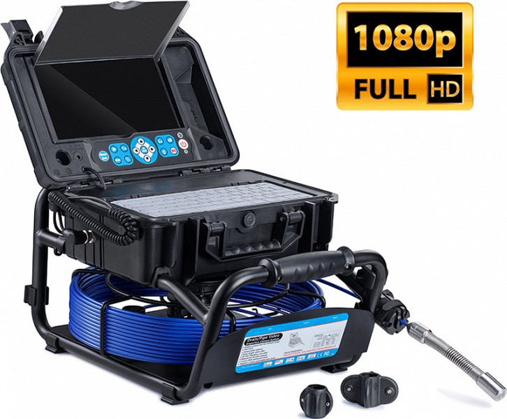 Проталкиваемая система видеодиагностики канализации Rotorica 3499F-30 (Роторика 3499Ф-30) с камерой CMOS, Ø 23 × 51 мм, широким углом обзора 130° и разрешением формата Full HD 1080P AHD (1920 × 1080), записью видео и аудио, встроенным счетчиком расстояния и катушкой с кабелем Ø 5,2 мм × 30 м предназначена для осмотра внутренних трубопроводов, канализации и сливов, а также для инспекции каналов, дымоходов, воздуховодов в производствах и домах.