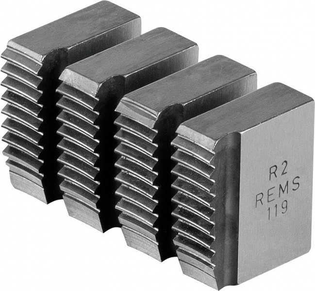 Резьбонарезные плашки Rems R 2" (Ремс Р 2") предназначены для нарезки правой трубной конической резьбы R (ISO 7-1, EN 10226 (DIN 2999, BSPT)) на стальных трубах Ø 2" с применением ручных и электрических резьбонарезных трубных клуппов Ева, Амиго, Амиго 2, Амиго 2 Компакт.