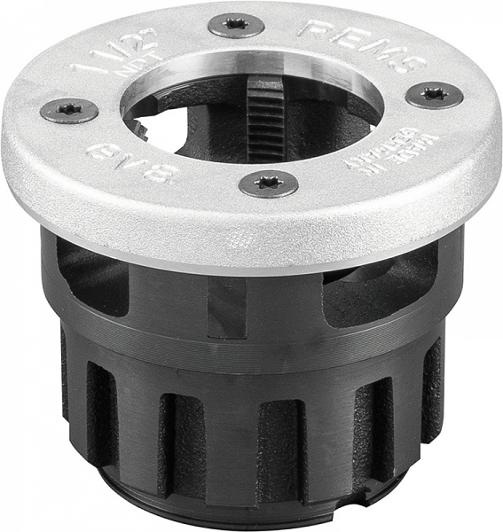 Всего один храповый рычаг для всего диапазона резки как до 1 1/4", так и до 2". Только один вид маленьких, компактных, быстросменных резьбонарезных головок и только один вид резьбонарезных плашек. Один вид резьбонарезных головок подходит ко всем клуппам Rems и соответствующим клуппам иных производителей. - Храповый рычаг: