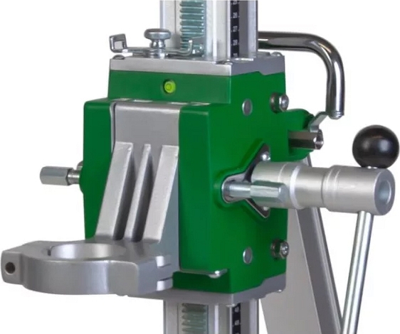 - Скорость подачи каретки: установлена регулировка скорости 1:2, чтобы сохранить больше силы; дополнительное место для крепления кривошипной рукоятки; двухскоростной редуктор подачи для снижения скорости и усилия значительно облегчает работу оператора при сверлении отверстий большого диаметра – малообслуживаемая направляющая каретки с легким ходом