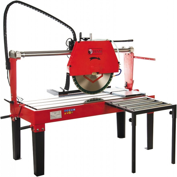 Станок камнерезный Diam SM-1200/4.0 (650) (Диам СМ-1200/4.0 (650) серии SM с подачей воды – настольный мостовой станок для резки камня, плит из природного камня, гранита, облицовочной плитки, строительных блоков длиной до 1000 мм, толщиной до 240 мм под углом 90°, а также под углом до 45°. Идеально подходит для работы с габаритными заготовками из мрамора, гранита, для резки широкоформатной плитки, керамогранита, кварцевого агломерата и других строительных материалов высокой прочности и большой толщины на крупных строительных объектах, камнеобрабатывающих цехах, когда требуется большая глубина резки и необходимо быстро и качественно выполнять работы по облицовке полов, стен, потолков.